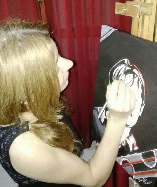 Oko fizyczne mknie i bada szczegółowo obraz, kontury, technikę, koloryzację, następnie stawia sobie pytania odnośnie wyboru czerwieni, światłocienia. A ten granat w tle? Być może nawet sama artystka dokładnie tego nie wie. Nie, nie jest tego w pełni świadoma, to my jesteśmy niedyskretni i próbujemy to sobie wyobrazić na zewnątrz. Przenikamy w głąb duszy indywidualności, której doprawdy nie znamy, podczas gdy nasza imaginacja aktywuje hermeceutykę całości, pragniemy dociec, pragniemy się dowiedzieć… Te proporcje… wyraźnie podkreślone ramiona, ręce oplatające nogi symbolizują podświadomą cenzurę lub chęć odgraniczenia, głowa odwrócona do tyłu kieruje wzok gdzieś w siną dal, lecz w jakim kierunku? I dlaczego? Być może to ucieczka od teraźniejszości, ucieczka od rzeczywistości, błądzenie w nicości.